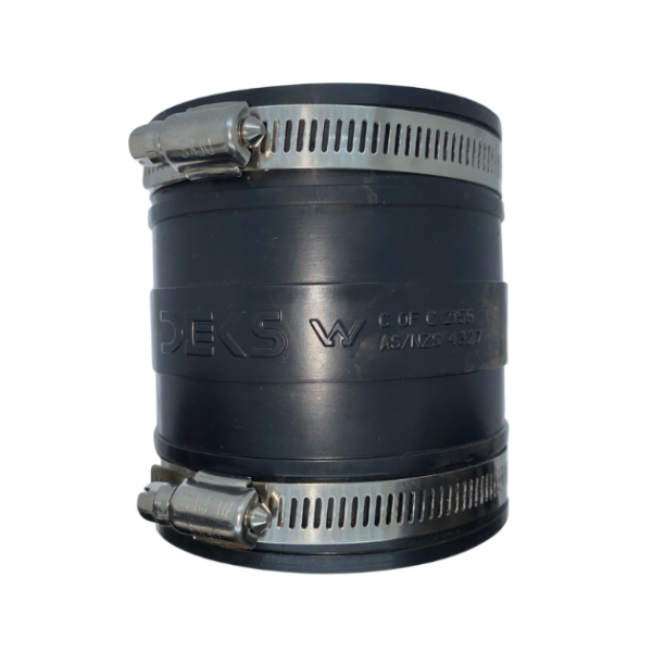 These flexible rubber adaptors are used for joining or repairing 3 inch pipes, and pipes that are between 84mm and 69mm. This is done by tightening the metal fasteners using a flat headed screwdriver to create a water-tight seal to the desired pipe diameter. Larger sizes of these are available for use with underground pipe.
